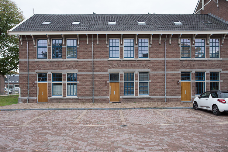 Een van de poten van het hoofdgebouw. De inpassing van de voordeuren is knap gedaan. Ze zien eruit of ze hier altijd al hebben gezeten.