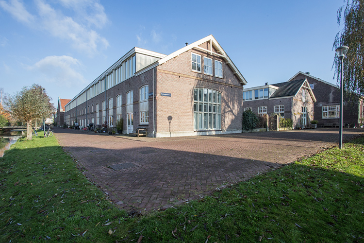Foto genomen vanaf de uiterste linkerachterzijde van het terrein. Zichtbaar is de achterzijde van de voormalige stallen/garages. Rechts op de foto de 'nieuwe' manege.