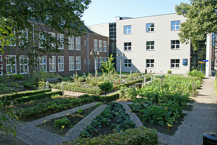 Deze tuin ligt achter de manschappeneetzaal en gebouw B1. Het geheel wordt verder afgesloten met nieuwbouw aan de zuidzijde. (foto: 27-07-2009)