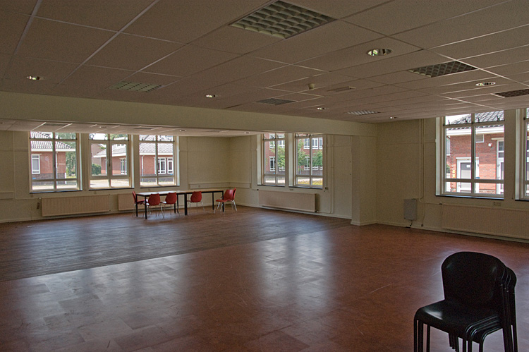 Na het uitbreken van de tussenwand vormen deze twee kamers op de kop van het rechter legeringsgebouw één geheel. Deze kamers waren oorspronkelijk bedoeld om in te eten en om les in te geven. Met de bouw van aparte eetzalen in de jaren '60 en '70 op alle kazernes waar deze niet bestonden, kwamen deze ruimtes vrij om ook voor legering gebruikt te worden. |