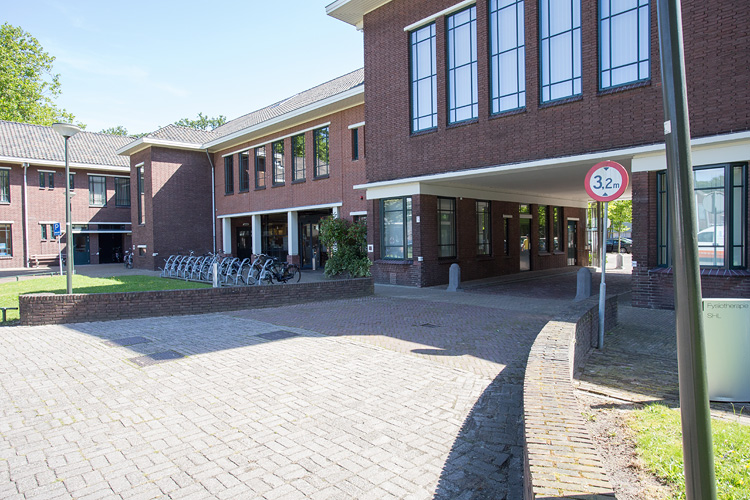 De binnenzijde van het hoofdgebouw kent aanpassingen. Het deel links naast de poort met de witte zuilen heeft een gewijzigde gevel. Hierachter bevindt zich de ingang naar apotheek en huisartsen.