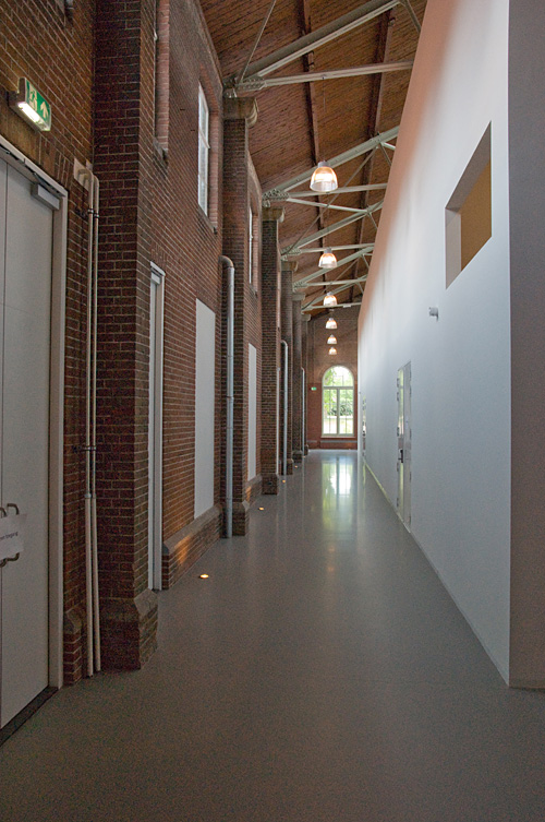 Er is ruimte in de middenloods overgehouden aan de zijden zodat om de oefenruimte heen gelopen kan worden. De oorspronkelijke vloer van straatklinkers is vervangen door een gestorte vloer. De oefenruimte met hierin een tribune, is net als de overige oefenruimtes acoustisch dicht, zodat er geen storende geluiden van buiten, of van binnen naar buiten kunnen komen. |