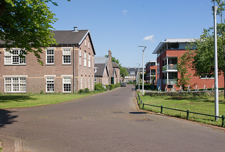 De Molenveldlaan aan de achterzijde. Op de voorgrond de rechterachtervleugel.