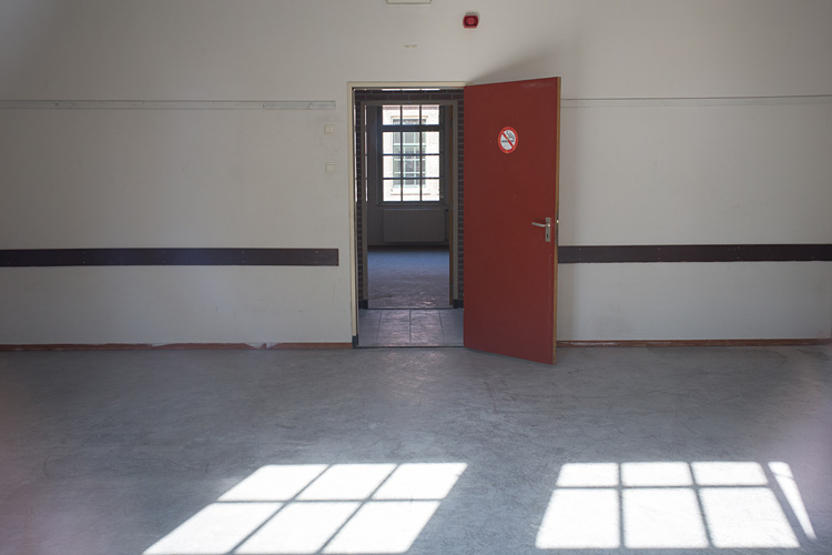 Legeringskamer aan de buitenzijde van de rechter achtervelugel. Door de deuren en ramen is de binnenste rechter achtervleugel te zien.