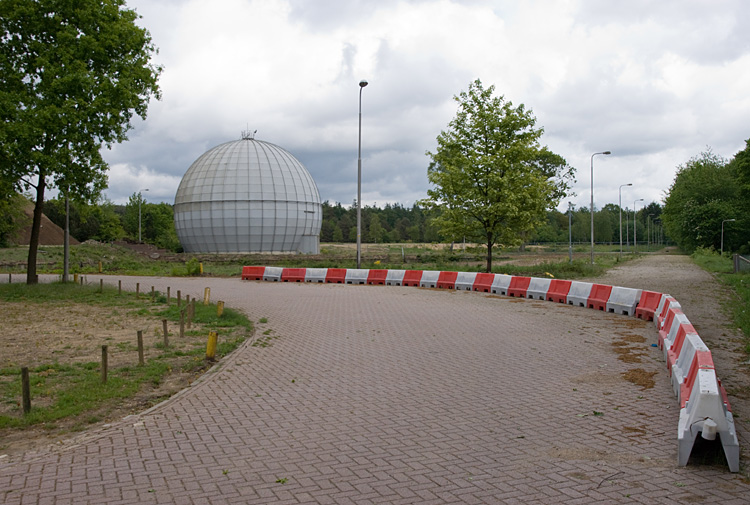 Foto genomen met de JWF-kazerne in de rug. De doorlopende weg rechts op de foto loopt dicht langs het spoor Ede-Wageningen.