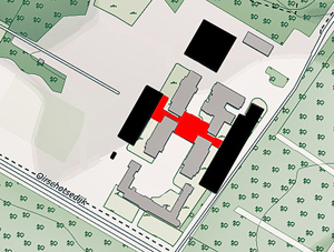 Dit deel werd verbouwd waarbij de status van rijksmonument gerespecteerd moest worden, wat aanpassingen aan de buitenzijden van de gebouwen beperkte en leidde tot het open houden van de appèlplaats. De drie legeringsgebouwen, het keuken-eetzaalgebouw en twee nieuwe gebouwen die hier ten westen en oosten van verrezen, zijn ondergronds met een grote corridor verbonden waarin de mediatheek is ondergebracht. Aan de achterzijde (noord) is een sporthal gebouwd.