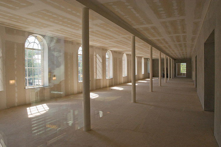 Van de originele indeling van het gebouw is in het middendeel (hier op de eerste verdieping) niet veel bewaard.