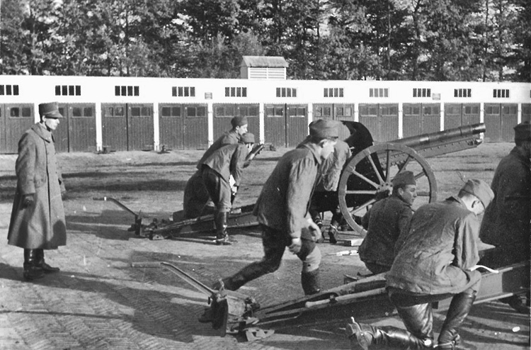 Oefenen met geschut door leerlingen van de SROBA op het park.