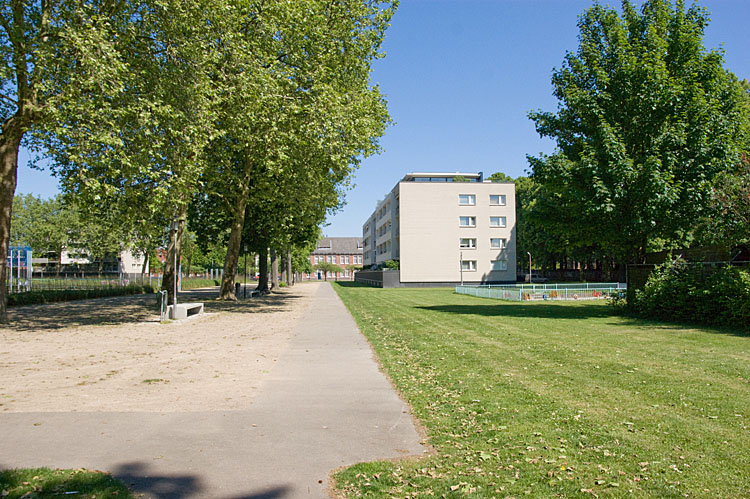 Het woongebouw rechts is op de plaats gekomen waar eerst de twee legeringsgebouwen stonden.
