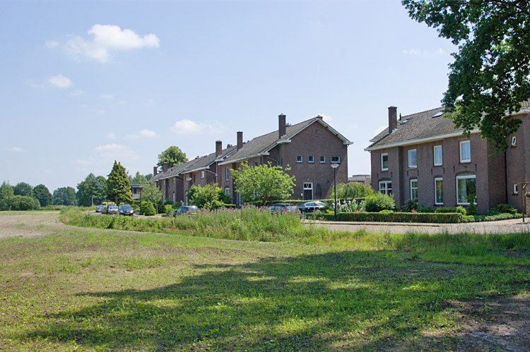 De dienstwonigen voor officieren die nu de noordkant van het Van Haeftenpark vorrmen, gezien vanaf de Zwolseweg. De daken en gevels zijn aangepast om stahoogte te verkrijgen aan de straatzijde.