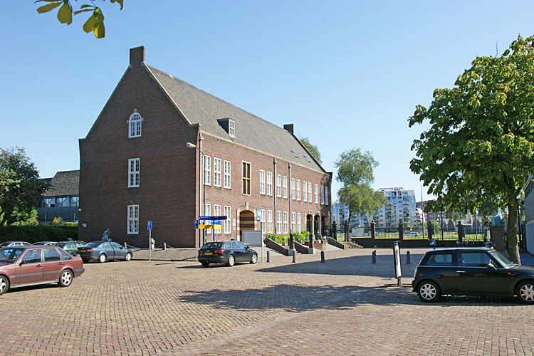 Het voormalige wacht- en bureelgebouw, tegenwoordig gebouw M, in de defensietijd gebouw C. (foto: 27-07-2009)