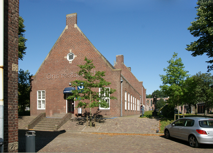 De kop van de vroegere manschappeneetzaal, keuken en onderofficierseetzaal. Ook heden heeft het een restaurantfunctie. (foto: 27-07-2009)